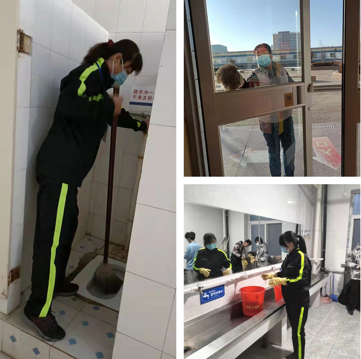 落实卫生保洁,做好公寓消毒。为全方位落实公寓防疫及卫生保洁措施,切实做好学生公寓卫生消杀工作,学工部认真准备、精心组织,成立由16名复退军人学生志愿者组成的集中消毒服务队,每天对校本部南北区和医学校区32栋公寓楼公共区域(楼道、卫生间、盥洗室、楼梯等)进行常规消毒灭菌工作,防止新冠肺炎等各类传染性疾病发生。同时,增加公寓内卫生保洁频次,督促楼管员做好公寓楼门厅、把手、楼道及卫生间日消毒工作,并详细登记;为学生宿舍配发消毒用品(含氯消毒剂、泡腾片),配合临时党支部督促学生做好宿舍内桌凳面、门把手以及电脑、鼠标、键盘、手机等部位和物品的消毒工作。