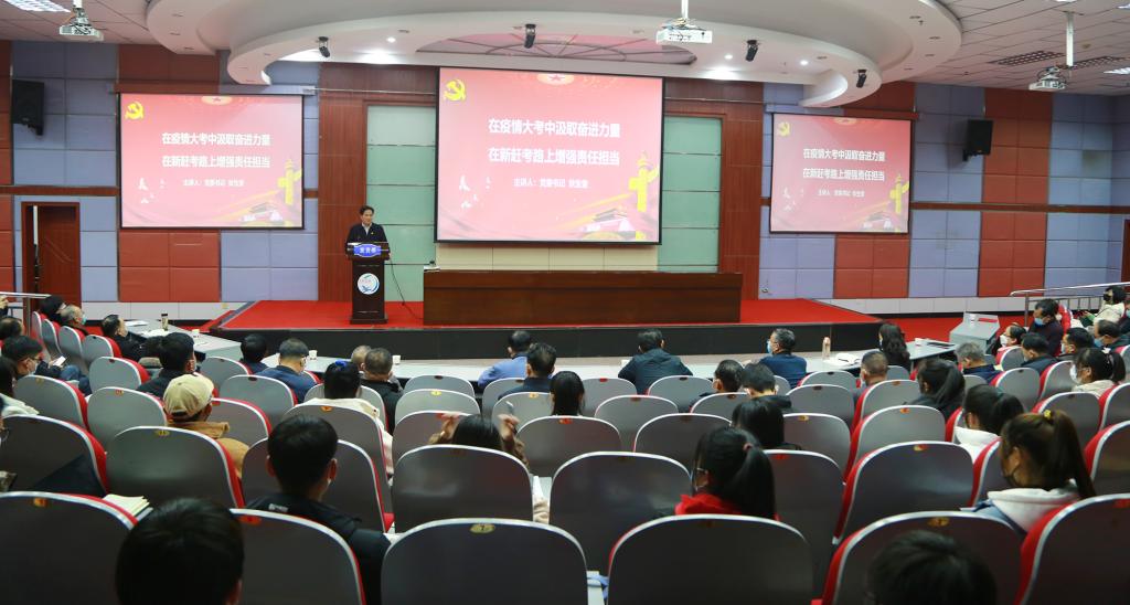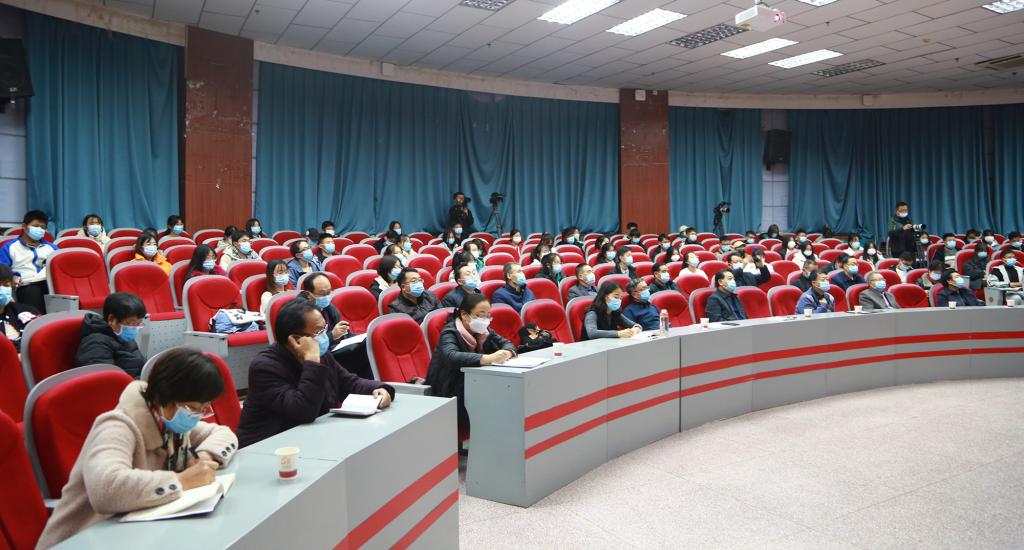 11月25日晚,党委书记狄生奎在图书馆二楼报告厅作了题为《在疫情大考中汲取奋进力量 在新赶考路上增强责任担当》的思政报告会,学校疫情防控指挥部“一办九组”副组长、二级学院书记,学生代表参加报告会。
