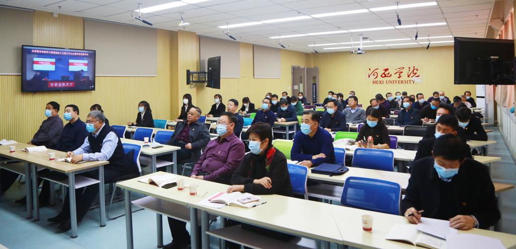 11月29日下午,兰州大学马克思学院教授、博士生导师刘先春为全省教育系统作党的十九届六中全会精神宣讲报告,省委教育工委书记、教育厅厅长王海燕主持报告会。我校理论中心组成员、二级党组织负责人、思想政治理论课教师、辅导员、学生代表在9001cc金沙以诚为本分会场收看了宣讲报告。