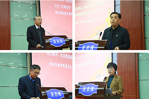 狄生奎强调,要提高政治站位,深刻认识做好新时代学校党建工作是推动新时代学校高质量发展的根本保证,是落实立德树人根本任务的内在需要,是抓好基层、打好基础的重要任务。他指出,近年来,学校党委认真贯彻落实新时代党的建设总要求,全面加强党对学校各项工作的领导,不断提升党建工作质量,为加快推进学校各项事业发展提供了坚强政治保障,学校各项工作不断取得新成绩。但是,也要清醒认识到,学校进入“十四五”发展时期,建设高水平应用型大学面临严峻挑战,学校发展面临同类型院校更加激烈的竞争,要切实发挥党建引领作用,推动学校事业高质量发展,为建设高水平应用型大学提供坚强保证。