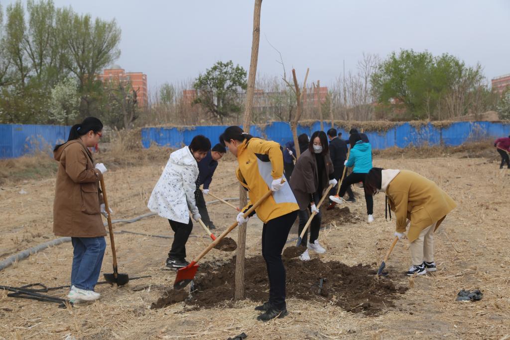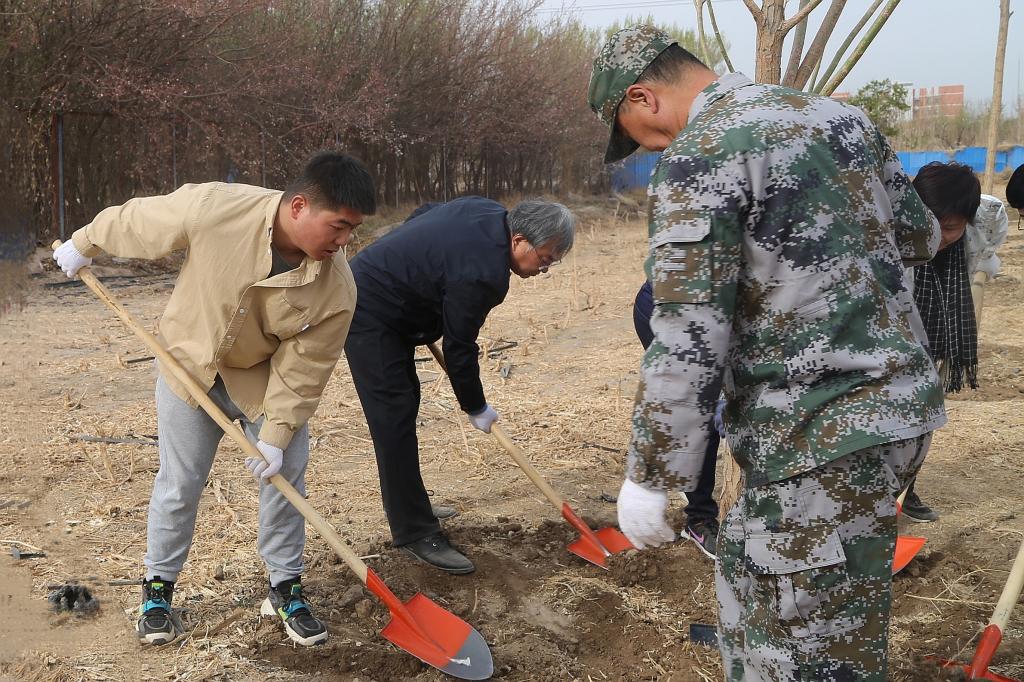 挥锨刨土、放苗定根、回填围堰、用脚踩实、浇水灌溉……植树现场洋溢着春天的气息。党员干部热情高涨,以实际行动践行“绿水青山就是金山银山”的理念,积极投身美化校园环境、助力学校育人环境建设。(供稿:宣传部)