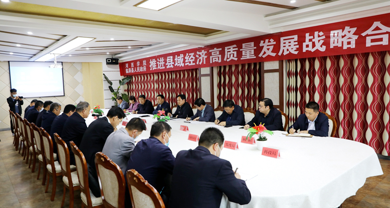 狄生奎指出,临泽县经济建设、社会发展、城乡面貌、民生事业发展变化大、发展势头猛、发展前景好。近年来,双方在文化旅游、工业经济、城乡规划等方面积极合作,做出了有益探索,县委县政府为学院服务地方经济发展提供了广阔的平台,学院将以此次签约为契机,整合资源,创新思路,进一步围绕凹凸棒石产业、新能源产业、彩虹家园建设与临泽县加强务实合作,为临泽经济社会发展提供智力支持和人才保障。希望双方不断加强协调对接,推动双方在合作深度、合作实效上取得新的突破。