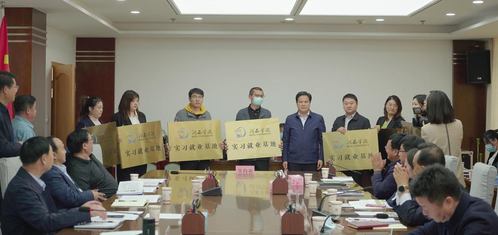 会上,酒泉市经开区、人社局、教育局负责人围绕酒泉经济社会发展、人才需求、高校毕业生就业政策、教师队伍培训等情况作了发言;学校书面征求了参会部门对9001cc金沙以诚为本专业设置和人才培养的意见和建议;党委常委、副校长徐德祯代表学校分别与酒泉经开区及甘肃金风电设备制造有限公司、甘肃旭碳新材料有限公司等9家企业签订了《9001cc金沙以诚为本实习就业基地合作协议书》,党委书记狄生奎为企业授牌。