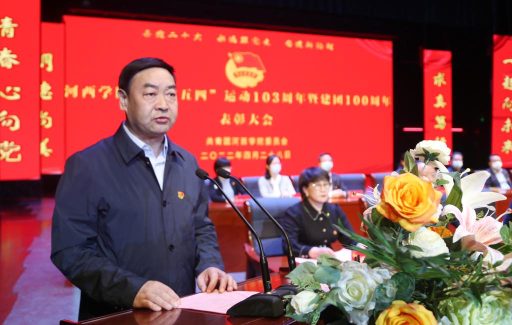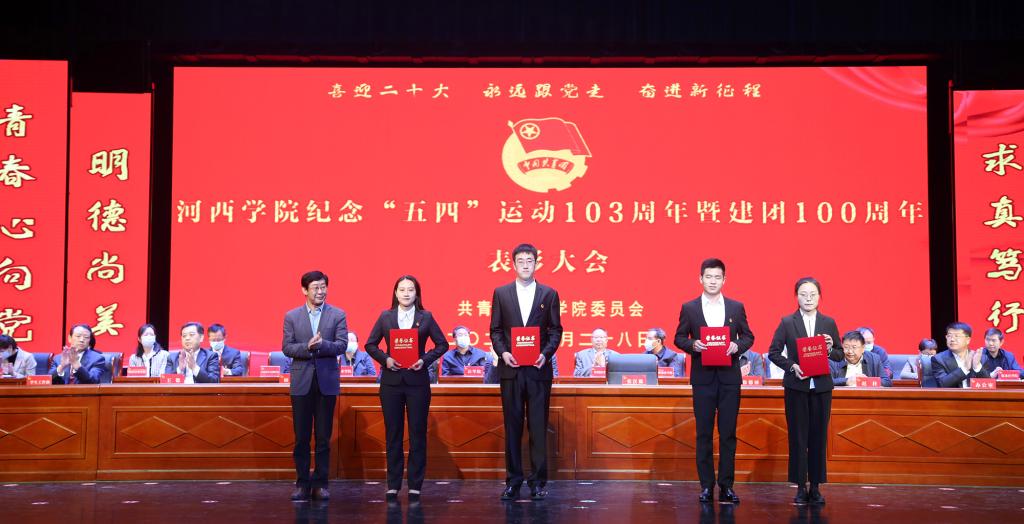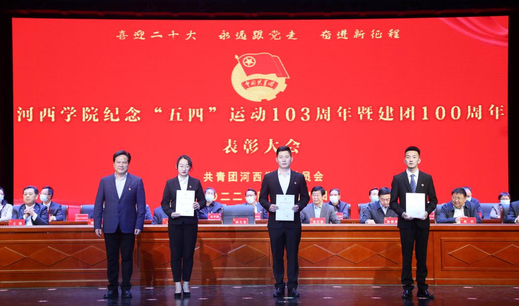 会上,学工部负责人宣读了国家奖学金、励志奖学金、甘肃省三好学生获奖名单;团委负责人宣读了2021年度我校共青团系统获得省级及以上和学校表彰决定;与会领导为获得表彰的先进集体和个人颁奖;获团中央 “全国大学生自强之星”荣誉称号的经济管理学院会计181班学生王作强代表获奖同学发言。