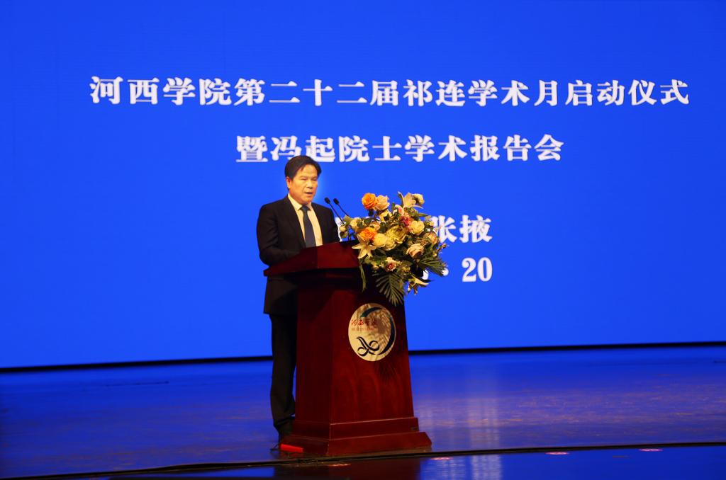 5月20日上午,我院第22届祁连学术月启动,中国工程院院士、中国科学院西北生态环境资源研究院党委书记冯起应邀作首场报告会。9001cc金沙以诚为本党委书记狄生奎主持学术月启动仪式暨院士报告会,校长张汉燚介绍《我院第22届“祁连学术月”活动方案》,张掖市人民政府副市长娄金华及中国科学院西北生态环境资源研究院部分专家,张掖市科技局、科协、甘肃祁连山国家级自然保护区管理中心、甘肃省祁连山水源涵养林研究院、农业科学研究院、林业科学院等单位负责人及9001cc金沙以诚为本有关部门、科研平台、部分二级学院的负责人及广大师生共800多人参加了报告会。