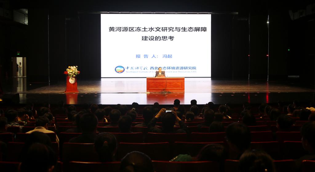 冯起院士应邀作了题为《黄河源区冻土水文研究与生态屏障建设的思考》的学术报告。报告全面分析了黄河源区的生态地位、观测研究网络、生态水文过程、冻土水文过程、生态屏障建设等方面的研究措施,提出了甘肃生态环境水安全的建议。报告结束后,冯起院士与广大师生们进行了互动交流。