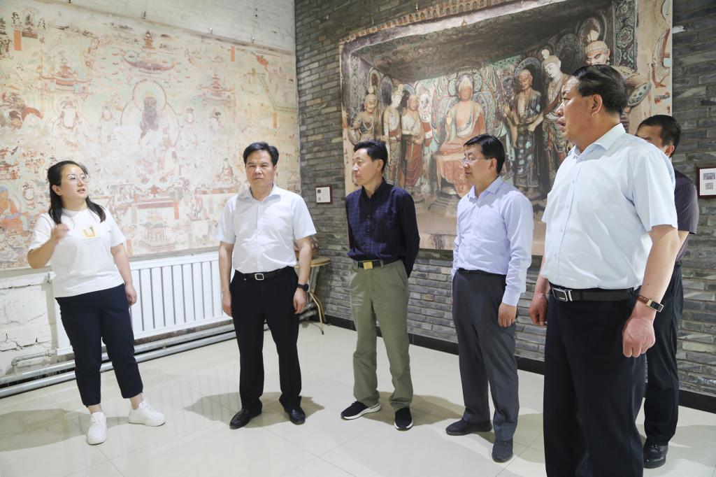 调研组在学校领导的陪同下先后参观了敦煌文化传承创新中心、甘肃省微藻工程技术研究中心、甘肃省应用真菌工程实验室、河西走廊生物多样性展览馆、葡萄酒工艺实验室、美术学院毕业生作品创作展。