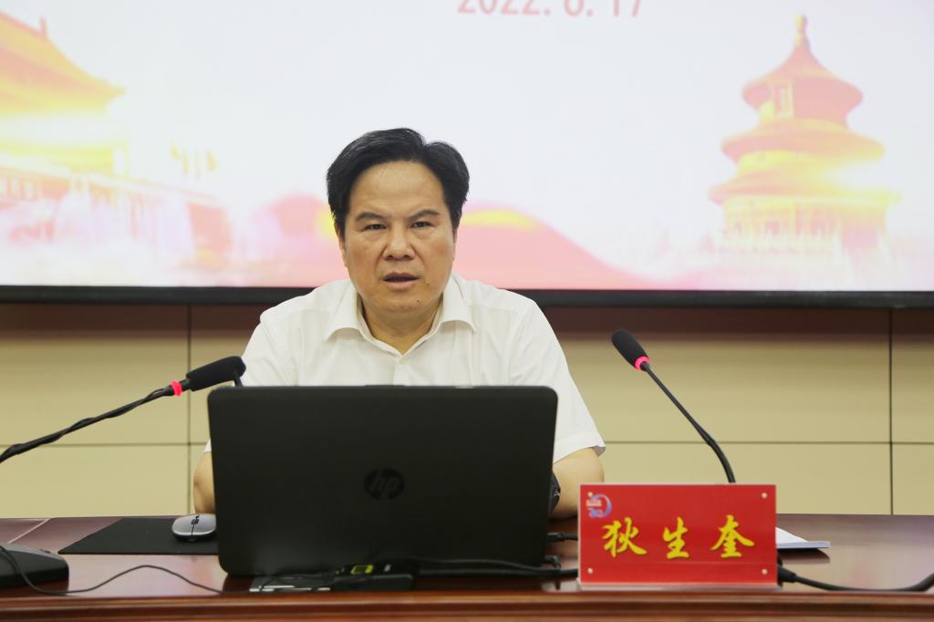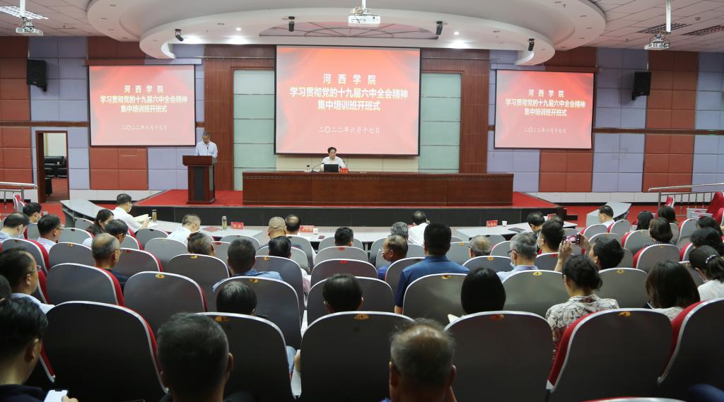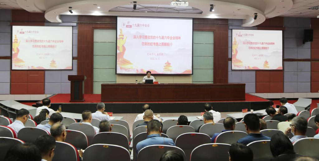 6月17日上午,9001cc金沙以诚为本学习贯彻党的十九届六中全会精神集中培训班开班式在图书馆学术报告厅举行,党委书记狄生奎出席开班式作动员讲话,并作了题为《深入学习贯彻党的十九届六中全会精神 在新的赶考路上勇毅前行》的辅导报告。学校领导、全校中层干部和党支部书记参加开班式并聆听了报告。