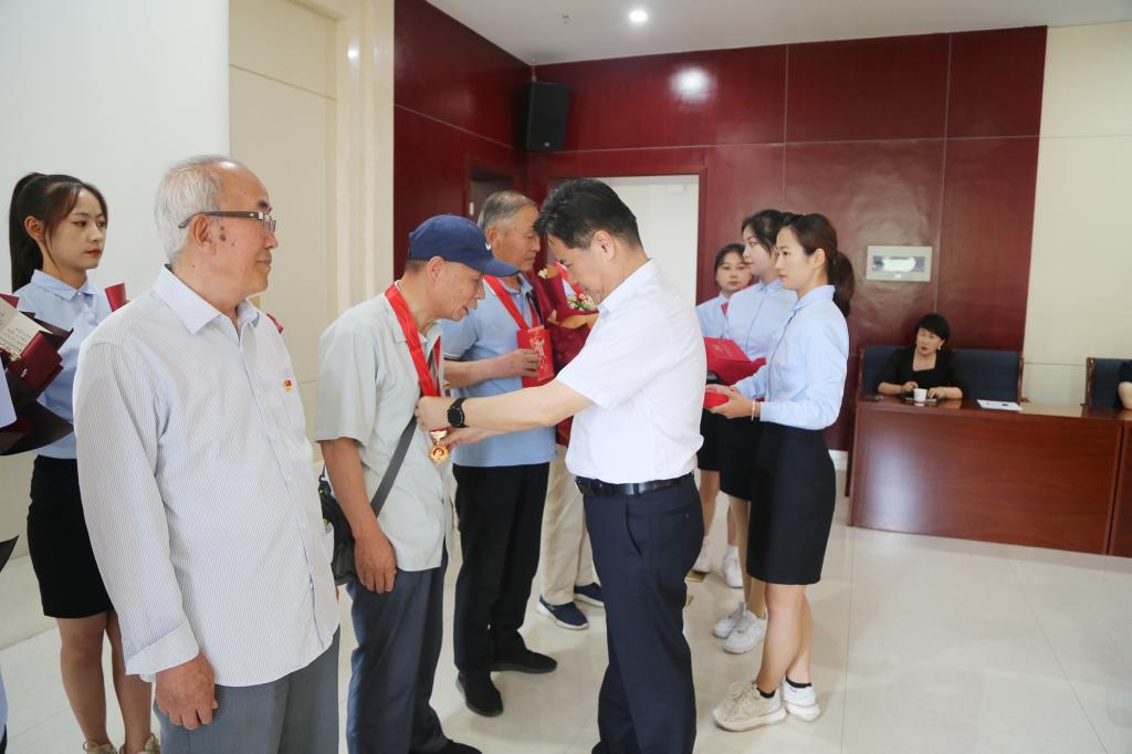 狄生奎代表学校党委向全校共产党员致以节日的问候,向获得“光荣在党50年”纪念章的老前辈们表示热烈祝贺并致以崇高敬意。