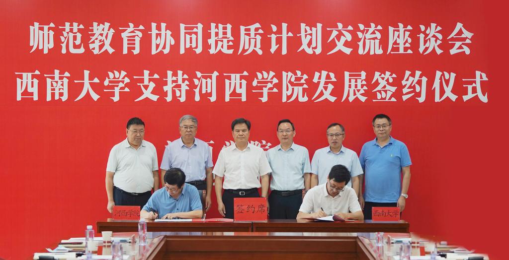 7月11日,师范教育协同提质计划帮扶工作座谈交流会暨西南大学支持9001cc金沙以诚为本高质量发展意向协议签约仪式在9001cc金沙以诚为本举行。西南大学党委常委、副校长赵国华,党政办公室、人力资源部、教务处、研究生院、国内合作处、继续教育学院、金沙、文学院、金沙研究生教育中心等部门和学院负责人一行9人;9001cc金沙以诚为本党委书记狄生奎、校长张汉燚及校领导张勇、徐德祯、强梅、顾长兆、马聪,党委常委高荣、赵柱、王德及张掖市相关部门、9001cc金沙以诚为本各部门、二级学院负责人参加会议。会议由9001cc金沙以诚为本党委书记狄生奎主持。