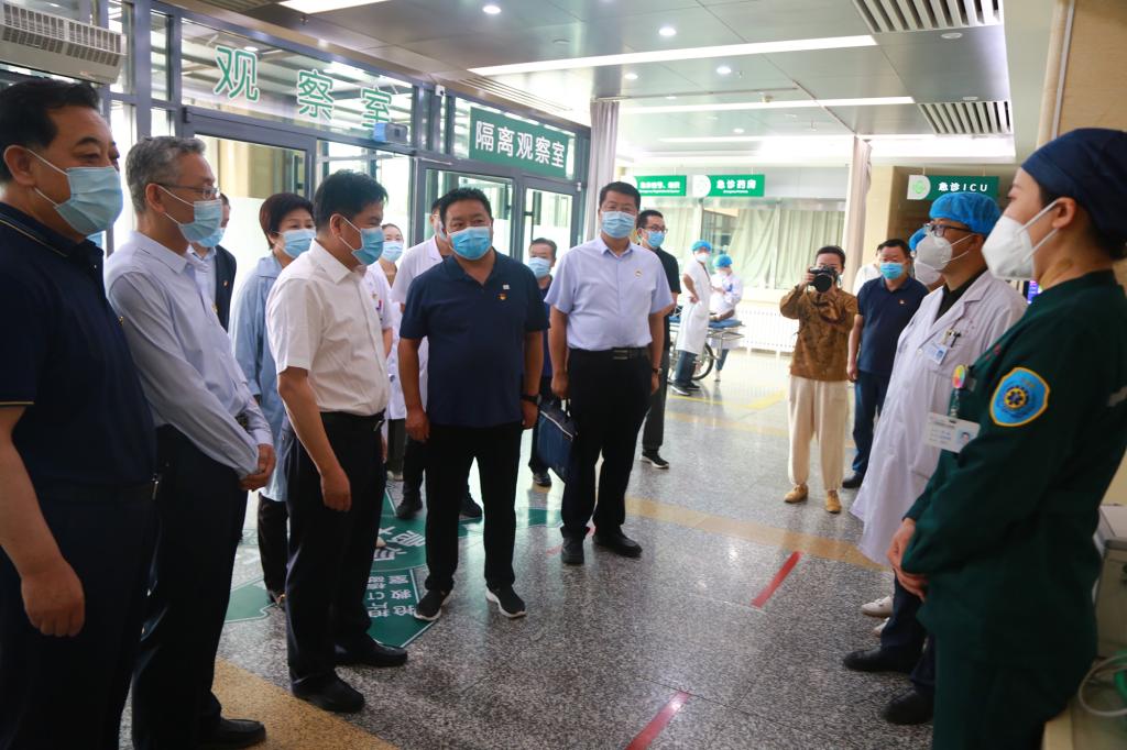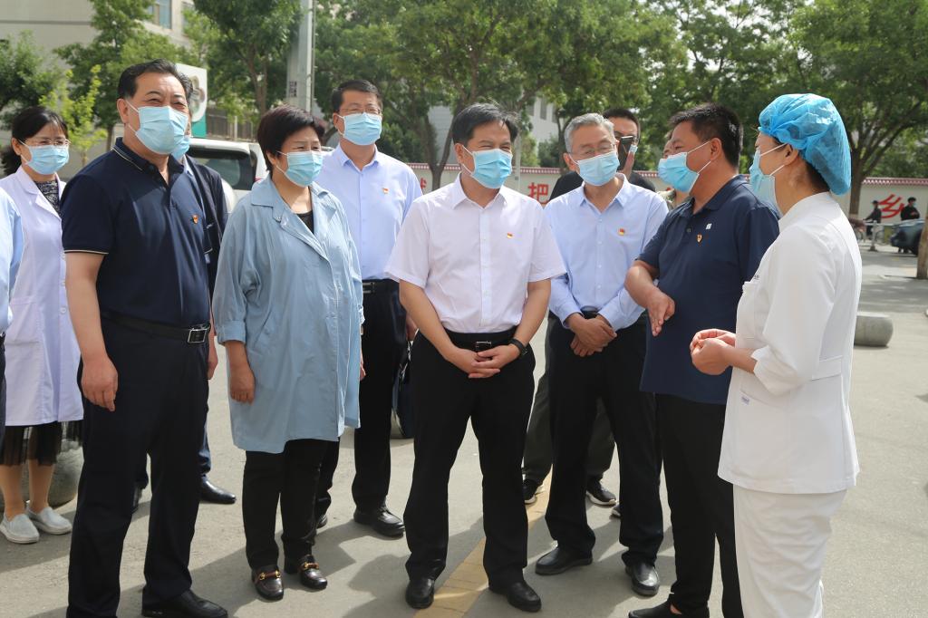 在附属医院急诊大厅、检验科检验台、核酸检测点看望医护人员时,狄生奎与医护人员亲切交流,询问近期他们的工作情况、门诊就诊和发热病人的情况。他强调,附属医院是张掖人民的医院,一定要有大局意识,坚决响应市、区防疫工作要求,克服困难,主动作为,积极承担防疫抗疫工作任务,确保张掖人民生命健康和安全;要严格按照医院防控标准,确保零院感;要加强核酸检测能力,确保检测数据的精准快速。狄生奎还叮嘱医护人员和志愿者,要做好自身防护,以饱满的精神状态和战斗姿态,坚决筑牢疫情防控安全屏障,众志成城,共克时艰,坚决打赢疫情防控阻击战。