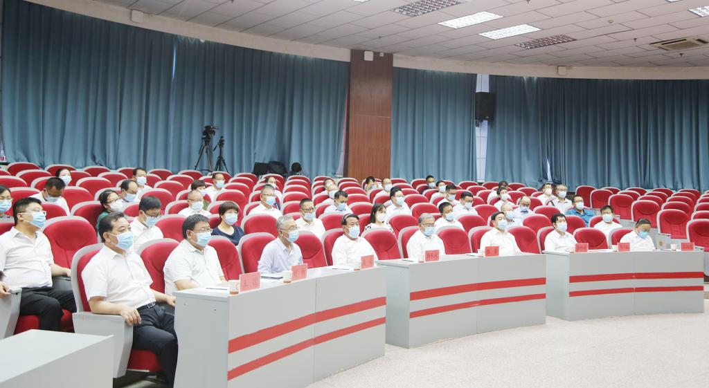 部分处级干部及教授、博士代表在主会场参加会议,其他处级干部、教师及学生代表在视频会议室及在线上参加会议。(办公室)