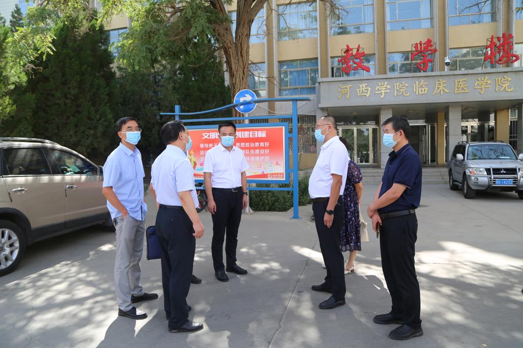 近日,党委书记梁兆光带领医学部、办公室及相关部门负责人到附属医院和医学专业学院进行调研,党委常委、附属医院党委书记王德陪同调研。