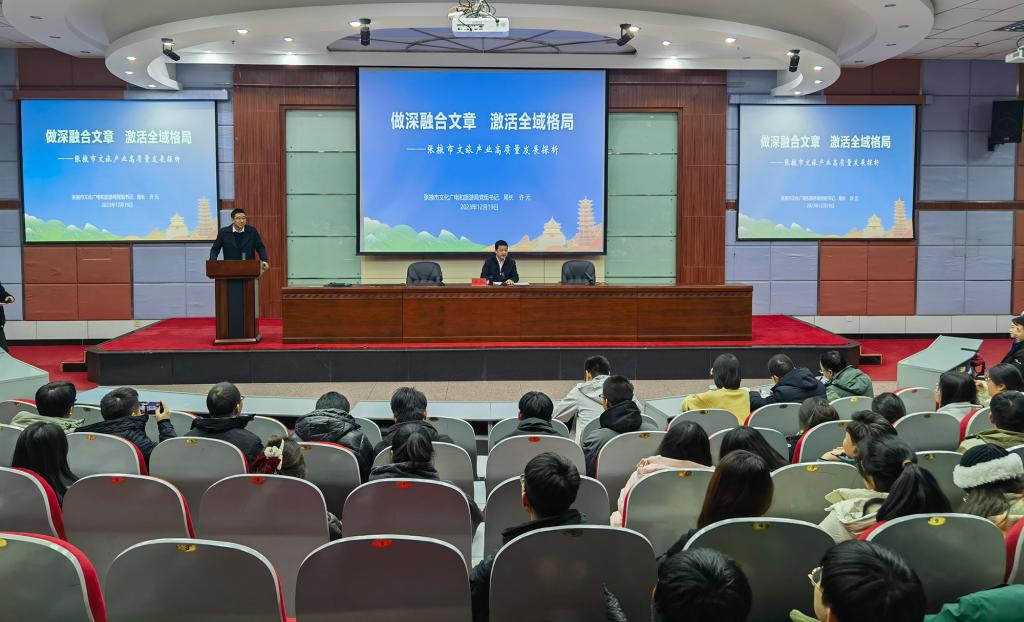 12月19日晚,张掖市文化广电和旅游局局长许元应历史文化与旅游学院和河西史地与文化研究中心邀请,为师生作了题为“做深融合文章 激活全域格局——张掖市文旅产业高质量发展探析”的报告。历史文化与旅游学院200余名本科生、14名硕士研究生与部分教师现场聆听了报告。