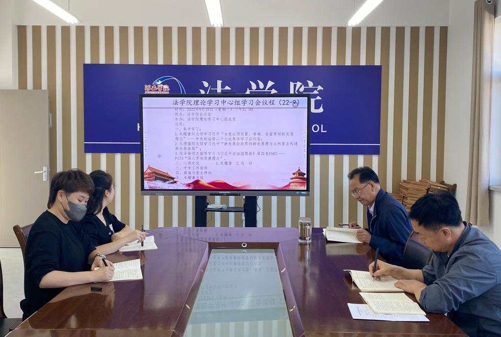会议指出,习近平总书记治国理政新发展理念是一个整体,要坚持创新发展、协调发展、绿色发展、开放发展、共享发展,全党全国要统一思想、协调行动、开拓前进。新发展理念集中展示了马克思主义中国化时代化的最新成果,全院一定要学懂弄通习近平新时代中国特色社会主义思想,完整、准确、全面贯彻新发展理念,立足新发展阶段、贯彻新发展理念、构建新发展格局。深刻领悟“两个确立”的决定性意义,进一步增强“四个意识”、坚定“四个自信”、做到“两个维护”。要坚持新发展理念,不断推进学科专业建设,积极服务地方法治建设,以高质量党建引领法学院绿色协调发展。
