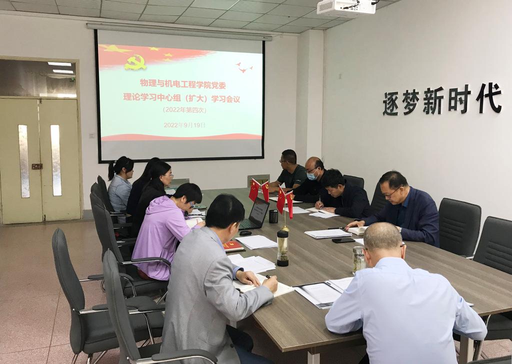 9月19日下午,物理与机电工程学院召开党委理论学习中心组(扩大)学习会。会议由学院党委负责人主持,中心组成员、各党支部书记及组织委员参加了学习会。