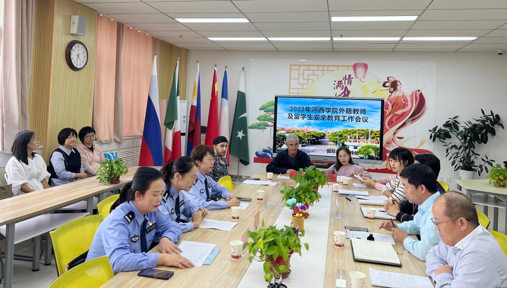 9月30日下午,学校召开外籍教师及留学生安全工作会议。张掖市公安局、甘州区公安分局、西街派出所负责人,学校国际交流合作处、外国语学院、学校安全稳定工作部等相关部门负责人和全体外籍教师、留学生参会。
