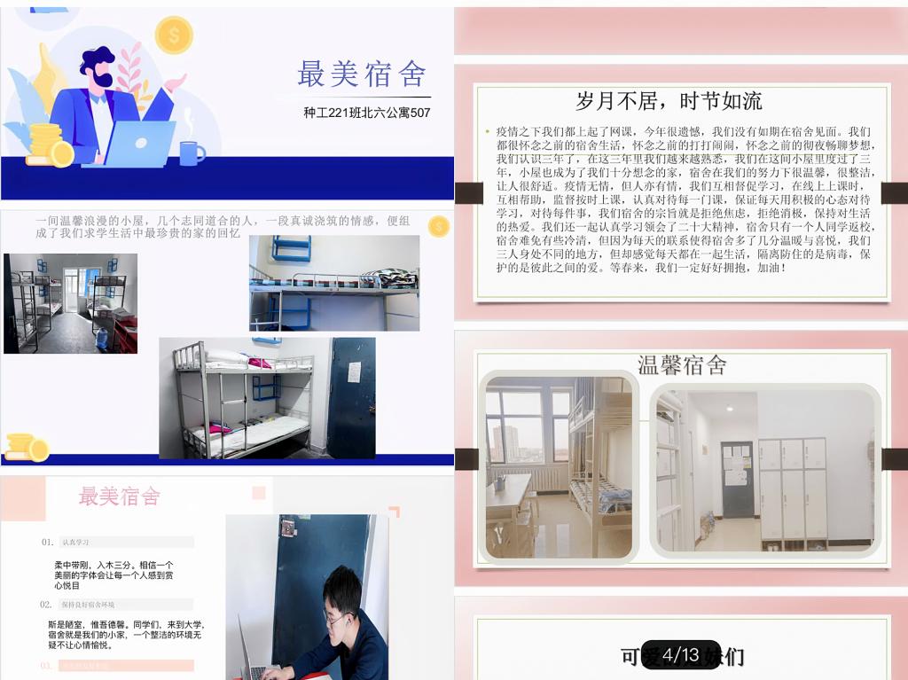 此次第二课堂活动形式新颖、内容多元,有最美室友评选比赛、最美宿舍展示比赛、最美笔记评选比赛、最美口罩设计大赛、“疫情下的突围”征文比赛等活动,吸引了学院23个班级同学以宿舍、班级为单位积极踊跃报名参加。学院领导、辅导员、班主任认真组织并指导学生完成“云上”作品,截至目前累计收集学生各类作品100余件,作品内容丰富多彩、积极向上,充分体现出疫情防控期间同学们积极乐观、阳光向上的心态和共克时艰的坚定决心。