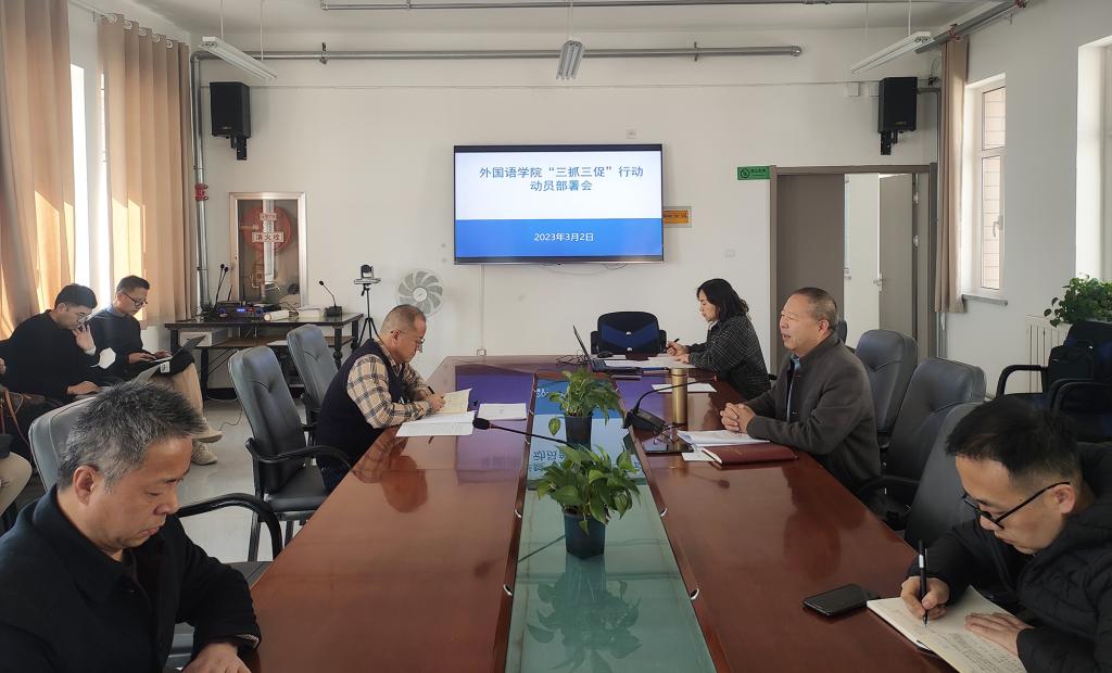 3月2日下午,外国语学院召开“三抓三促”行动动员部署会,全体教职工参会。