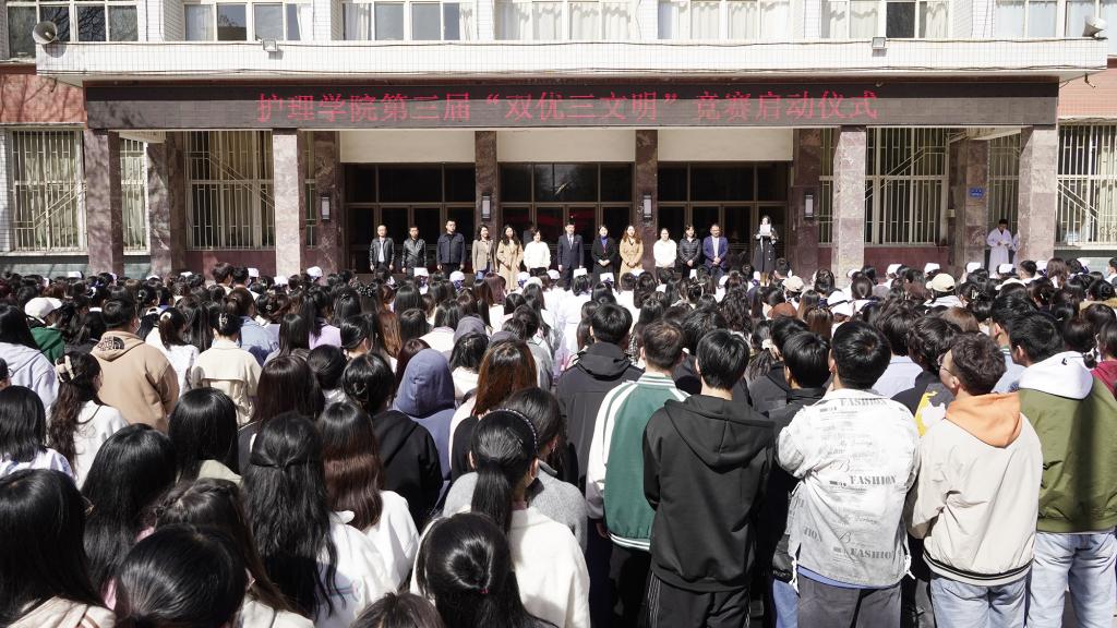 35日,护理学院举办了以争优良学风、创优美环境,争创文明班级、争建文明宿舍、争做文明大学生为主题的第三届双优三文明竞赛活动启动仪式。学院领导班子成员、全体班主任、辅导员及近1000多名同学参加了启动仪式。