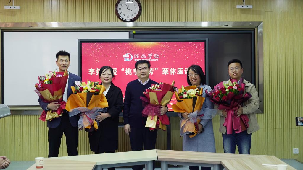 课后结束的 “桃李芬芳”荣休座谈会上,赵柱代表学校向李老师赠送了献花并致欢送词,对他多年来的辛勤的耕耘和无私的奉献表示深深的敬意! 感谢他在学院管理与教学工作中恪尽职守、培育英才,为后辈同仁们树立了学习的典范与榜样。校友代表、在校学生纷纷向李老师赠送了献花,殷殷深情难忘怀;老师们表达了对李教师工作精神与爱岗敬业的由衷敬意和钦佩,为老教师们送上了诚挚美好的祝福,并表示将以李教师的无私奉献与严谨求实为楷模,坚守初心,传承优秀,弘扬美德,立足岗位作贡献。