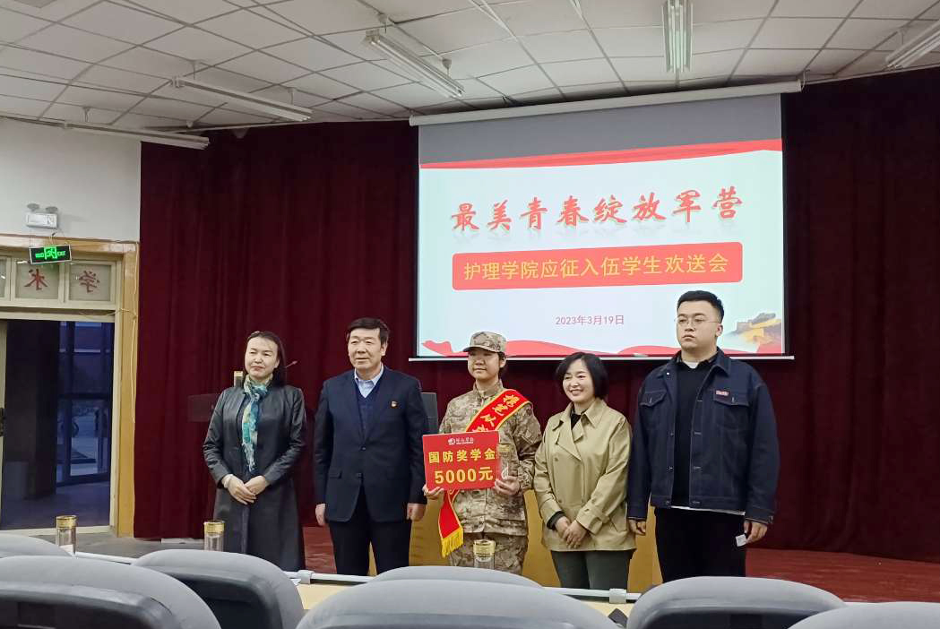 3月19日,护理学院为应征入伍的张雯同学举行了欢送会。学院领导、班主任、辅导员及400多名在校同学参加了欢送会。