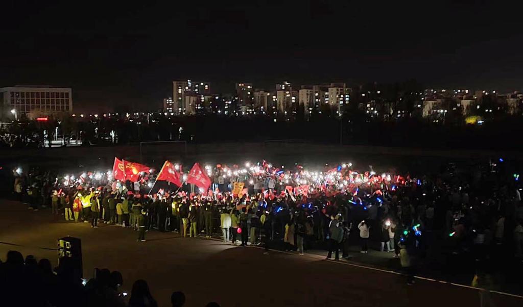 随着工作人员发令,1200名师生分组出发,开始了他们欢乐的夜跑之旅。在校园内四个打卡点,参与夜跑师生均需参加任务,有趣味吹气球、党的二十大知识竞赛、环保知识你问我答等;操场上激情四射的荧光舞会,跟随着美妙的音乐,同学们的欢声笑语中舞动青春。活动在全体师生挥舞着荧光棒、手机集体合唱《我和我的祖国》《歌唱祖国》歌声中圆满结束。