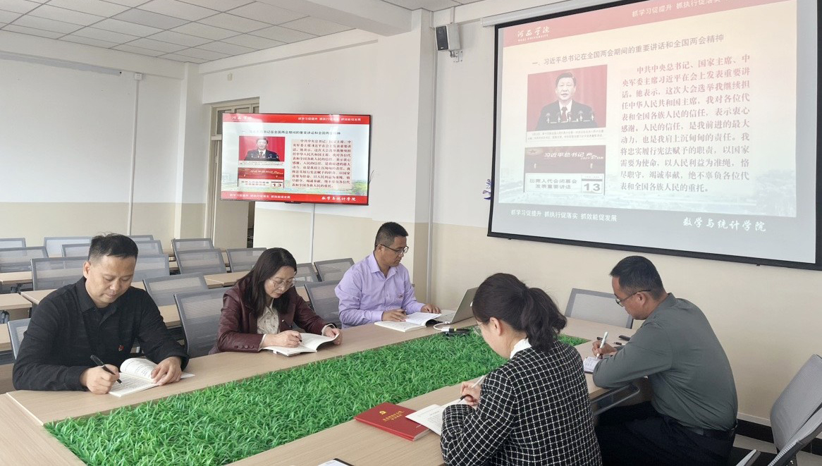330日,数学与统计学院召开党委理论学习中心组学习会,学院班子成员、党委委员、教工党支部书记、学生党支部书记参加会议。