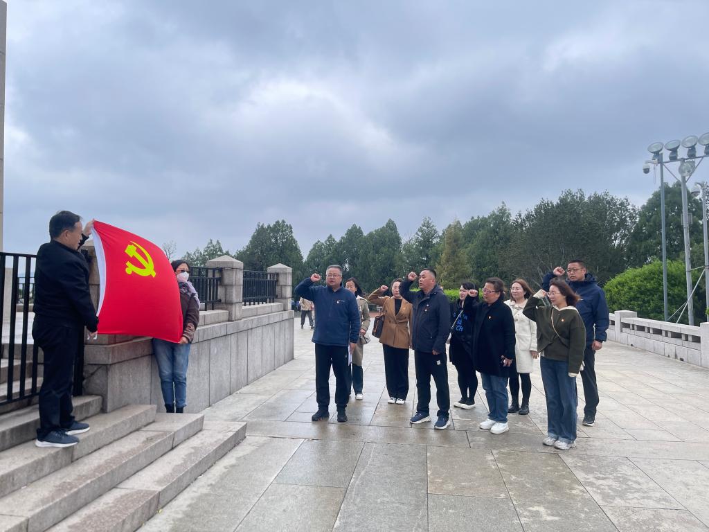 活动最后,在革命烈士纪念塔前,面对鲜红党旗,由临时党支部负责人孙晨纲同志带领大家体会入党初心、铭记入党誓词、坚定理想信念、重温入党誓词。铿锵有力的誓词传达着党员同志们立足本职、不忘初心、继续前进的决心和信念。