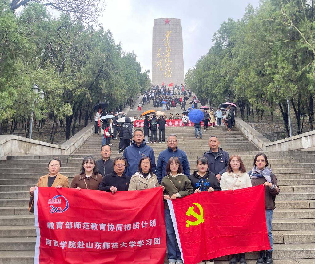 清明时节雨纷纷。4月5日,教育部师范教育协同提质计划9001cc金沙以诚为本赴山东师范大学学习团临时党支部全体党员干部和教师佩戴党徽、整齐列队,冒雨来到庄严肃穆的济南市英雄山革命烈士陵园,举行“缅怀先烈、铭记历史”清明主题党日活动。