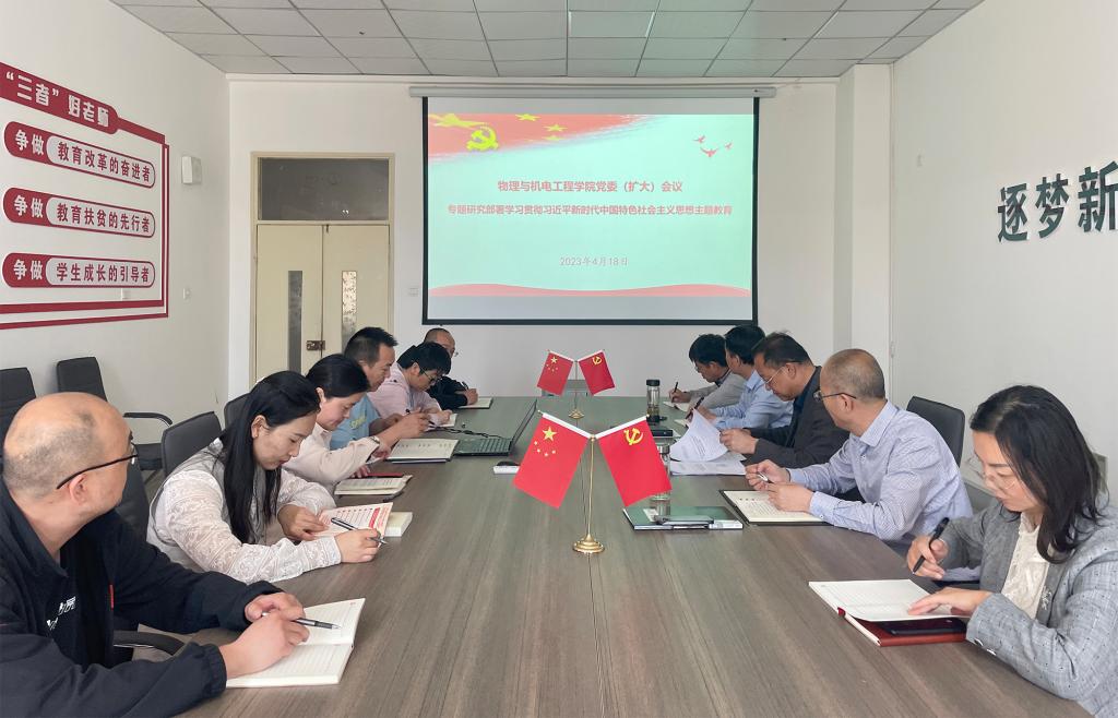 4月18日下午,物理与机电工程学院召开党委(扩大)会议,专题研究部署学习习近平新时代中国特色社会主义思想主题教育。学院党委委员、学院各支部书记及办公室负责人参加了会议。