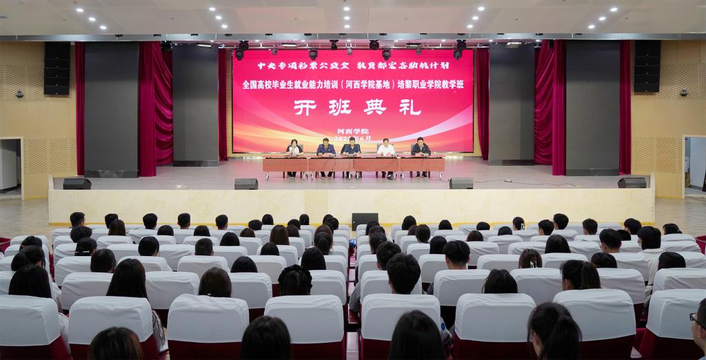 6月10日,2023年“中央专项彩票公益金·宏志助航计划”全国高校毕业生就业能力培训9001cc金沙以诚为本基地培黎职业学院教学班开班仪式在培黎职业学院文化交流中心举行。培黎职业学院党委委员、副院长吴全民,招生就业处、学生处等部门负责人及我校就业指导工作办公室负责人、基地培训授课导师和150名参训学员参加开班典礼。