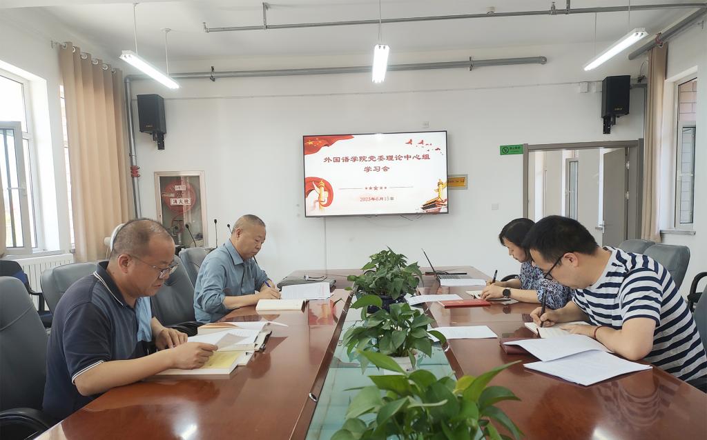 6月15日上午,外国语学院召开党委理论学习中心组学习会,党委理论学习中心组成员参加学习。