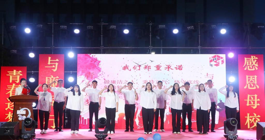 晚会上,宣读了廉洁从业倡议书,毕业班学生代表作“廉洁从业”承诺,希望广大毕业生把廉洁作为职业道德“岗前培训”的必修课,扣好人生起步的“第一粒扣子”,在清廉的人生路上,迈好第一步,走稳每一步,早日成就青春梦想。