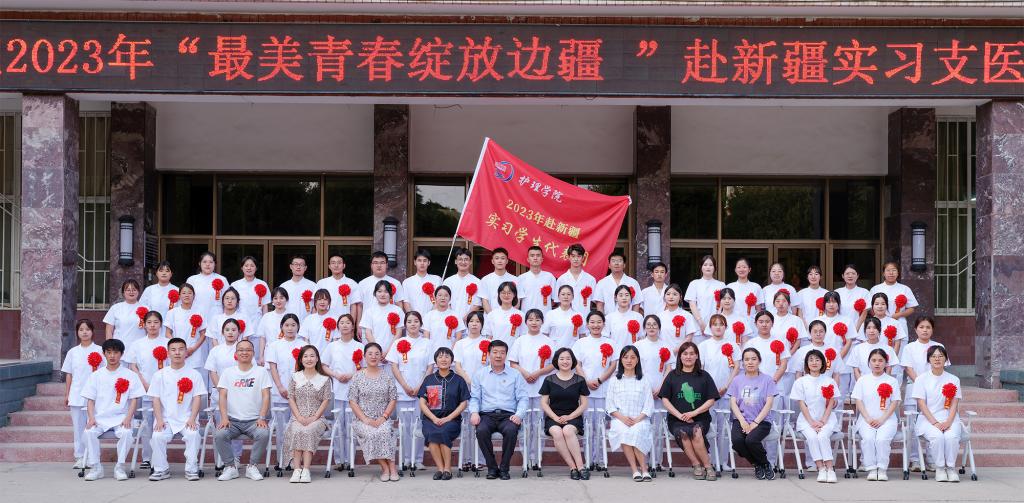 护理学院高度重视赴疆实习带就业工作,自2021年实施“十百千人才援疆”工程以来,分三批组织了361名学生赴新疆喀什等6个地区的十多家医院开展实习带就业工作,共有326名同学在新疆就业,大力助推了我校人才智力援疆工作。今年秋学期,护理学院将组织84名本专科学生到喀什地区第一人民医院、阿克苏市人民医院、哈密红星医院等7家医院开展实习支医工作。