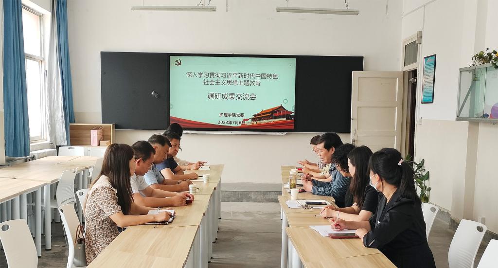 7月6日上午,护理学院召开了深入学习贯彻习近平新时代中国特色社会主义思想主题教育调研成果交流会。护理学院党委理论学习中心组全体成员参加会议,学校主题教育第三巡回指导组到会指导。
