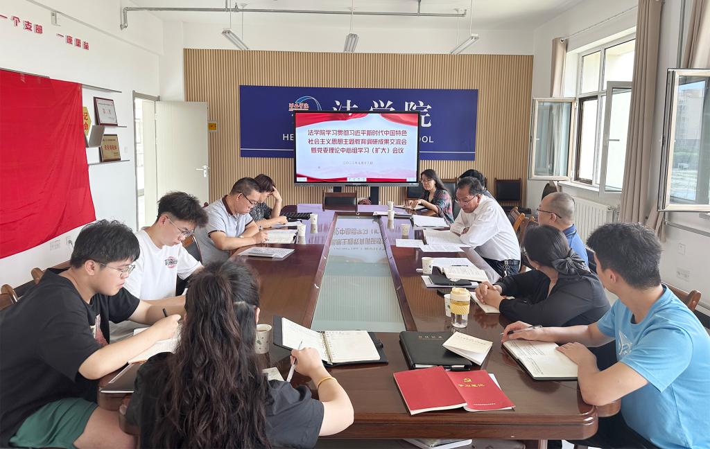 7月13日上午,法学院召开了深入学习贯彻习近平新时代中国特色社会主义思想主题教育调研成果交流会。学校主题教育第三巡回指导组负责人参加会议并作指导。