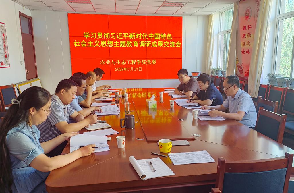 7月17日上午,农业与生态工程学院召开深入学习贯彻习近平新时代中国特色社会主义思想主题教育调研成果交流会。学校主题教育第四巡回指导组负责人参加了会议。