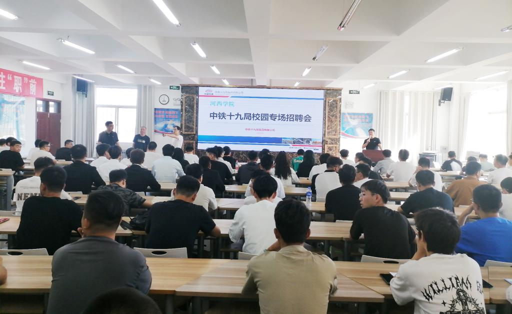 招聘会上,中铁十九局集团人力资源部负责人详细介绍了公司的组织架构、企业资质、经营范围、公司荣誉等,现场解答了参会学生关注的问题。经过自荐书审核,两轮面试等,有15名毕业生完成现场签约。