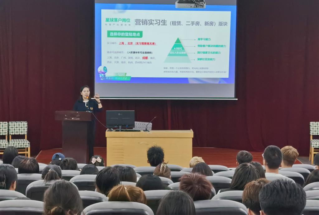 会上,上海链家技术有限公司招聘负责人通过播放企业宣传片、ppt展示等对企业基本情况、薪资待遇、员工晋升、发展态势等进行了宣讲;同时,企业负责人分析了行业发展情况与就业形势,鼓励学生尽早准备,积极就业,参会学生就相关事宜进行了咨询。招聘会后,10余名学生投递简历。