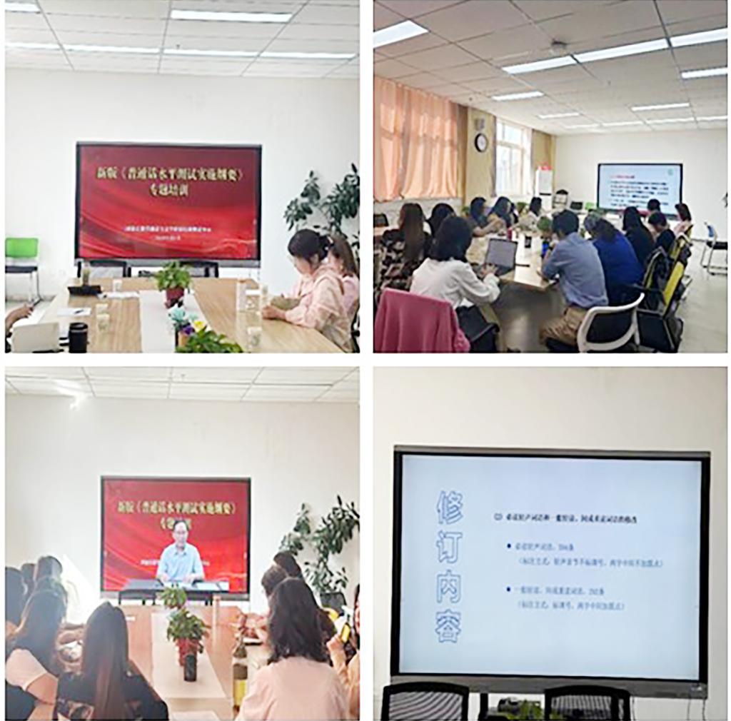 学校语委按照甘肃省语委的要求,组织普通话水平测试员集中参加了为期一天的专题培训。围绕新版《普通话水平测试实施纲要》《普通话语音分析》《普通话水平测试用普通话词语表》《普通话水平测试用普通话与方言常见语法差异对照表》《普通话水平测试用朗读作品》《普通话水平测试用话题》的修订以及《普通话水平测试成绩评定办法》等内容进行了专题培训,并组织测试员进行了认真学习和讨论。