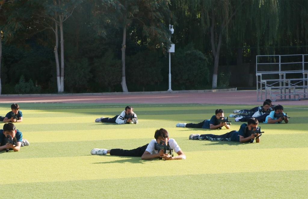 “前方发现‘敌情’,隐蔽前行!”烈日炎炎,医学校区塑胶操场上,一群“迷彩战士”手持钢枪,朝着“硝烟”弥漫的“战场”搜索前进。通过开展战术动作、格斗基础、卫生与救护等具有实战特点的军事技能培训,让“军味”“兵味”“战味”浓起来,增强了体验感,激发了学生参训热情。