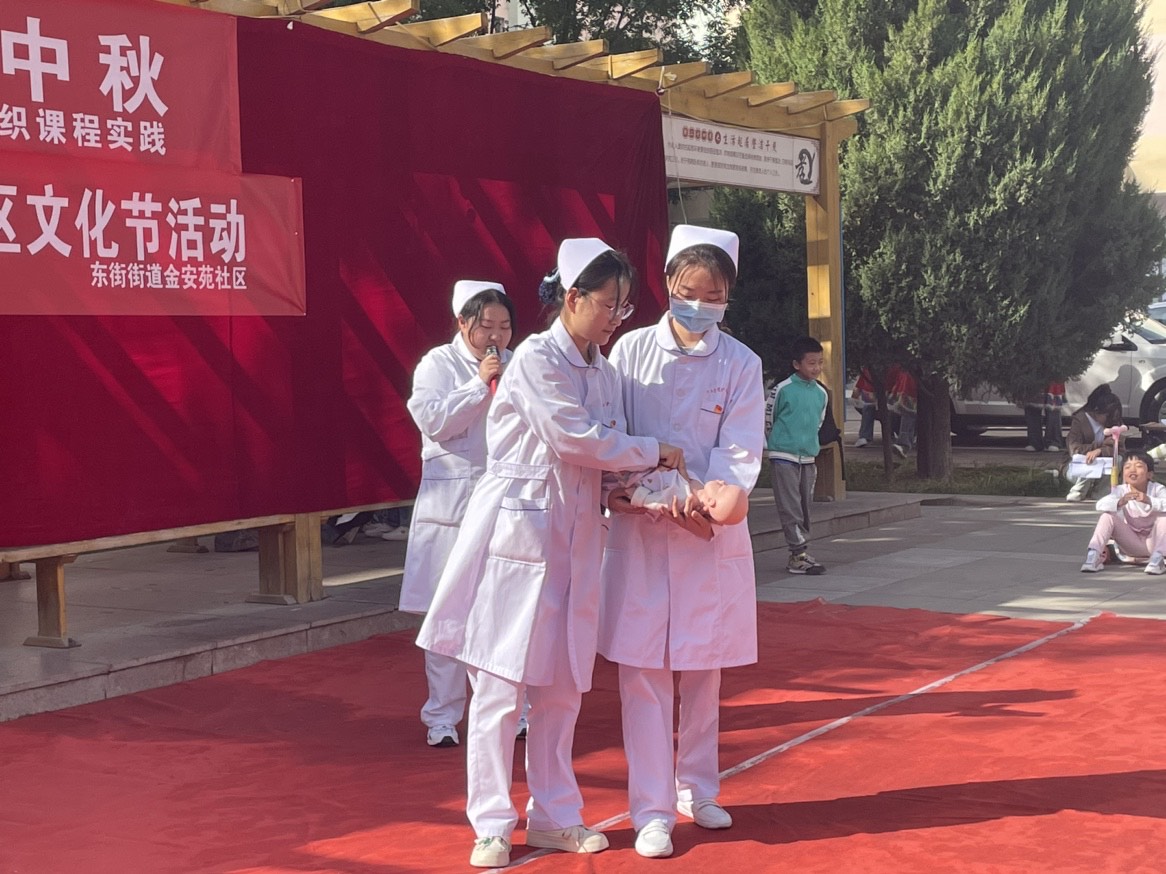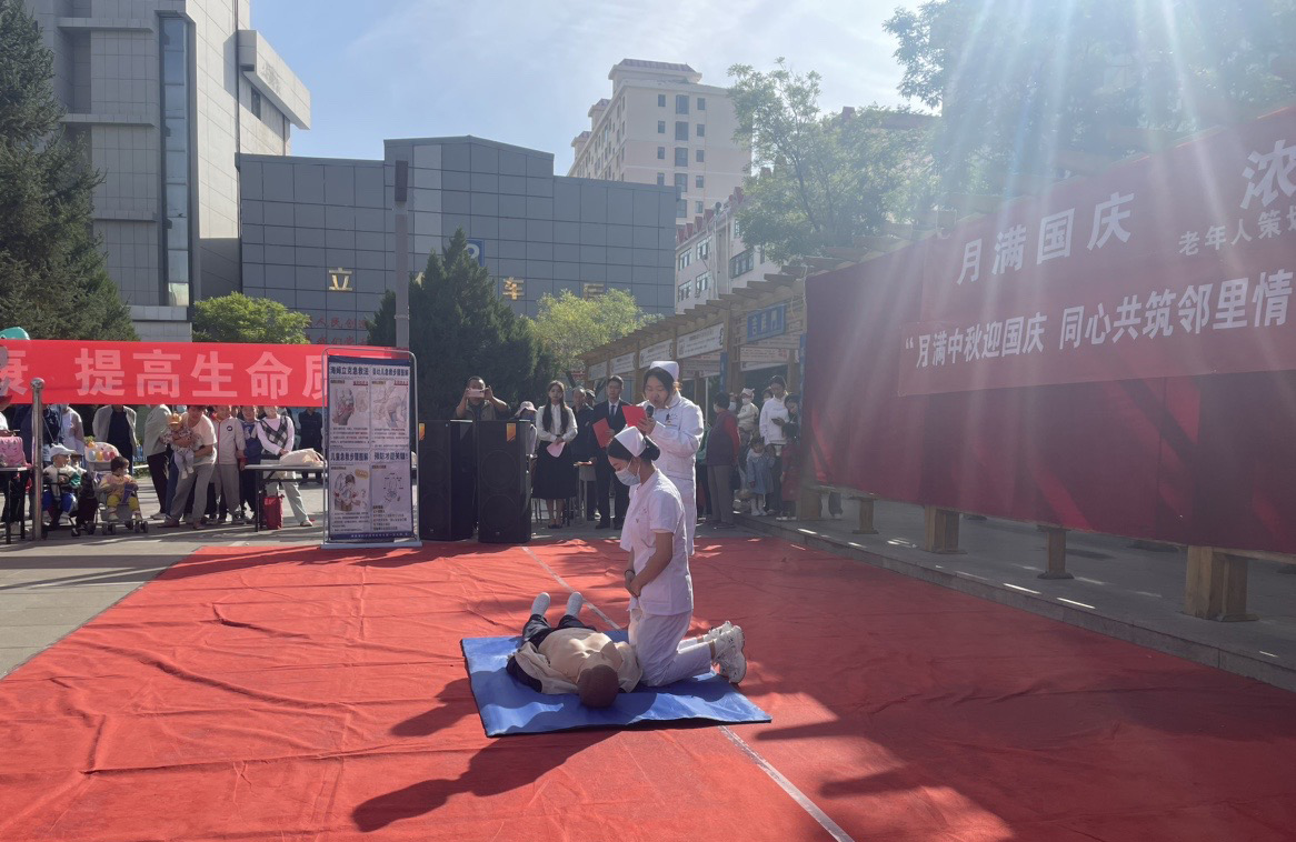 活动现场,护理学院师生为现场居民宣讲急救理论知识,普及急救措施,并详细演示了心肺复苏、海姆立克急救法、宠物咬伤、触电等一些生活中常见的急救操作,现场居民认真学习、互动积极。同时,养老服务221班团支部的同学为现场居民表演节目,与现场居民共庆“国庆”、共度中秋。