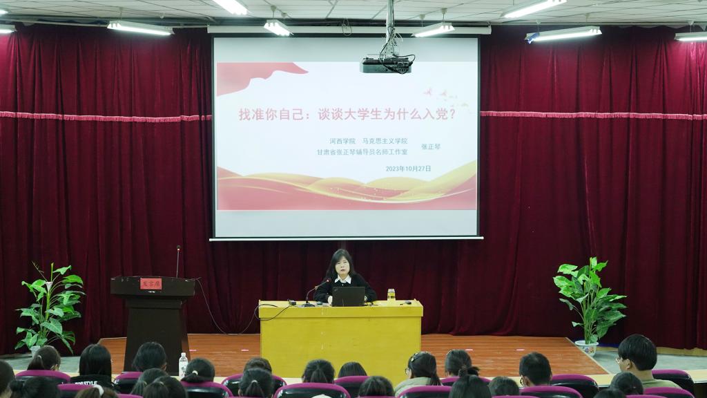 10月27日下午,护理学院举办思想政治教育专题讲座,马克思主义学院副教授张正琴以“找准你自己:谈谈大学生为什么入党”为题进行讲授,2023级新生300余人到场聆听。