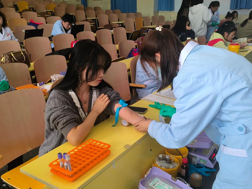 为充分发挥临床医学专业大学生的带头作用,10月下旬,临床医学院青年志愿者分会和医学院青协,联合张掖市中心血站老师及工作人员,在医学院开展无偿献血活动,用热血延续生命,一次挽袖就是爱心传递,一袋热血就是生命的接力。