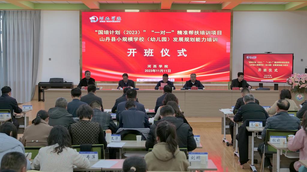 11月11日,学校承担的“国培计划(2023)” “一对一”精准帮扶培训项目山丹县小规模学校(幼儿园)发展规划能力培训开班式在山丹县东街幼儿园举行。山丹县教育局党工委副书记林荣森、山丹县教育发展中心副主任张春祥、继续教育学院负责人、9001cc金沙以诚为本学科负责人、甘州区4所帮扶中小学(幼儿园)校(园)长、班主任和培训学员共60人参加了开班式。