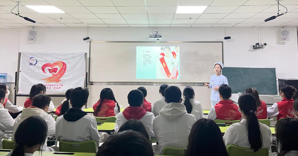 11月14日下午,临床医学院在附属张掖人民医院实训中心开展“医心向党 健康为民”——志愿服务专题培训活动。培训邀请附属医院门诊部护士长闫玉梅主讲。学生党员和青年志愿者协会志愿者参加。