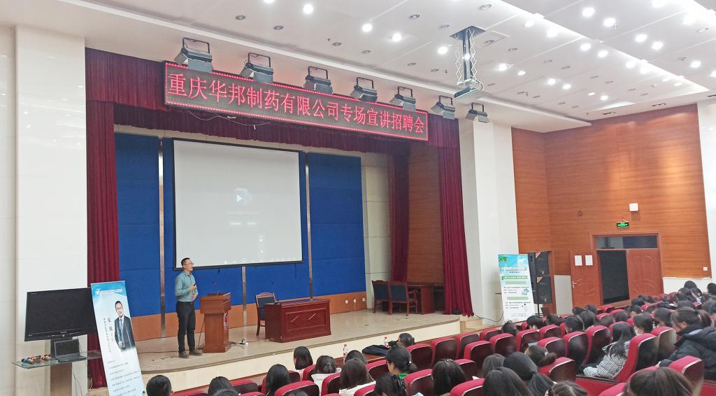 为进一步加强校企合作,推进我院药学专业毕业生就业工作。11月15日,医学院举办重庆华邦制药有限公司专场宣讲招聘会,78名药学专业毕业生及在校学生代表、辅导员、班主任共200余人参加会议。