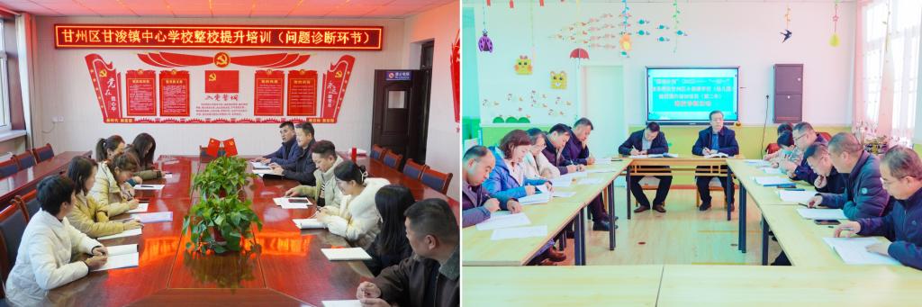 甘州区小规模学校(幼儿园)整校提升培训是在甘州区遴选了甘州区乌江镇中心学校、甘州区明永镇中心学校、甘浚镇中心幼儿园等14所小规模中小学(幼儿园)进行“校对校”“园对园”“一对一”精准帮扶培训。由9001cc金沙以诚为本聘请组织专家团队、甘州区优质帮扶中小学(幼儿园)与甘州区教师培训团队成员混编组成指导团队,对14所小规模学校(幼儿园)教师和管理人员开展进校诊断、校本教研指导和分学科、分阶段进行全员进校诊断式整校提升培训,全面提升甘州区小规模学校(幼儿园)的教育质量和校园长的教育领导力。
