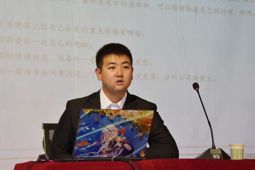 会上,杨文鹏分享了自己在大学期间的学习生活,从大一大二时的迷茫,到大三时开始认真规划自己未来的方向与目标,深入系统学习专业相关知识、增强实践能力,大四期间积极参加招聘并通过校园招聘成功入职中移铁通阿克苏分公司。因专业扎实、工作能力突出,入职半年就从助理岗位成长为部门经理。杨文鹏就职业规划及就业方向进行了分享,希望学弟、学妹们要及时关注行业发展前景,抓住校园招聘机会,积极选择适合自己的工作。同时,他通过自己在新疆工作生活的点点滴滴,希望同学们加强对新疆的了解,到新疆就业、到西部就业,让青春之花绽放在祖国最需要的地方。